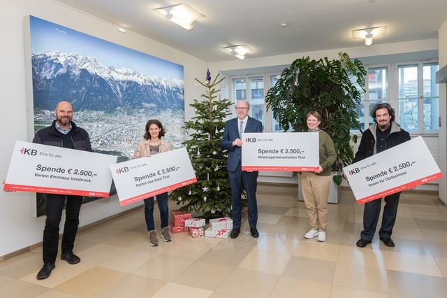 Das Jahr 2020 stand unter dem Einfluss der Corona-Pandemie. IKB-Vorstandsvorsitzender DI Helmuth Müller: „Gerade in schwierigen Zeiten wie dem heurigen Jahr sind soziale Vereine ein verlässlicher und sicherer Rückhalt für die Bevölkerung, besonders für Menschen mit sozialen und wirtschaftlichen Problemen." Mit ihrer traditionellen Weihnachtsspende unterstützt die IKB dieses Jahr die Vinzenzgemeinschaften Tirol, den Verein für Obdachlose, Rettet das Kind Tirol und den Verein EMMAUS mit jeweils 2.500 Euro. Die passenden Schecks wurden heute feierlich im IKB-Kundencenter überreicht. Die VertreterInnen der Sozialvereine freuen sich, weil sie mit der Spende jenen unter die Arme greifen können, die es gerade rund um die Weihnachtszeit besonders brauchen.