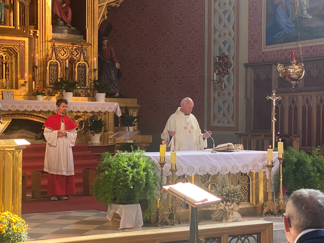 Petrus scheint ein Fan unserer Wallfahrt zu sein. Bei blauem Himmel und strahlendem Sonnenschein genossen die fröhlich gestimmten TeilnehmerInnen einen wunderbaren Ausflug. Eine wahrliche große Anzahl an WallfahrerInnen machten sich auf den Weg nach Zirl mit dem Ziel, in der Pfarrkirche zum heiligen Kreuz eine Messe zu feiern. Der gemeinsame Gottesdienst wurde vom Geistlichen Beirat der Vinzenzgemeinschaften in Tirol, Msgr Pfarrer Helmut Gatterer, würdig zelebriert. Die musikalische Umrahmung begeisterte auf höchstem Niveau durch den Organisten Dr. Joachim Mayer sowie dem Bläserquintett des Musikvereines Zirl.