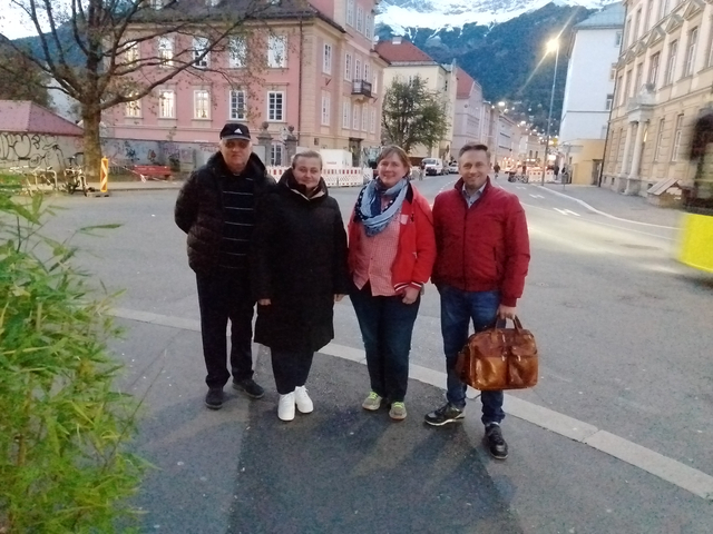 Im Bild: Freude beim Besuch in Tirol: Halyna Tsaryk, Pfarrer Jaroslav, den Dolmetsch Dr. Volodymyr Horbal und Dr. Karoline Knitel
