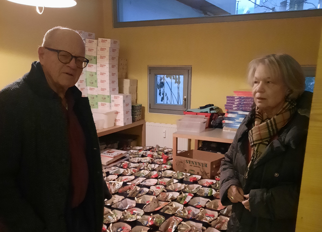 Im Bild: Obmann Dr. Peter Reiter bei der Paketübergabe an eine Mitarbeiterin der Teestube