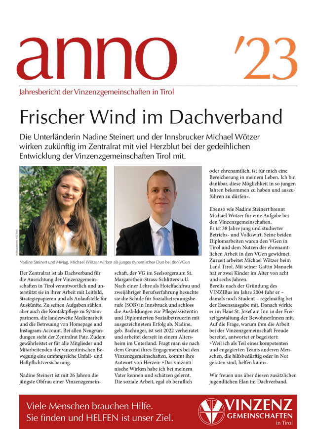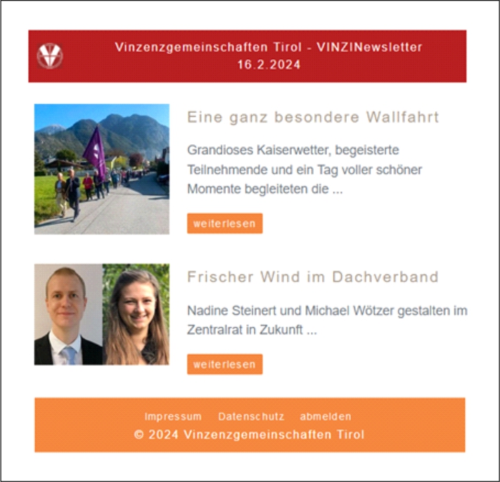9. 3. 2024: Die Vinzenzgemeinschaften Tirol informieren Mitglieder und Mitarbeitende mit dem neuen Newsletter über die aktuellen Aktivitäten.