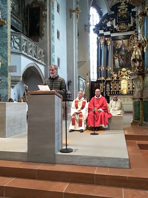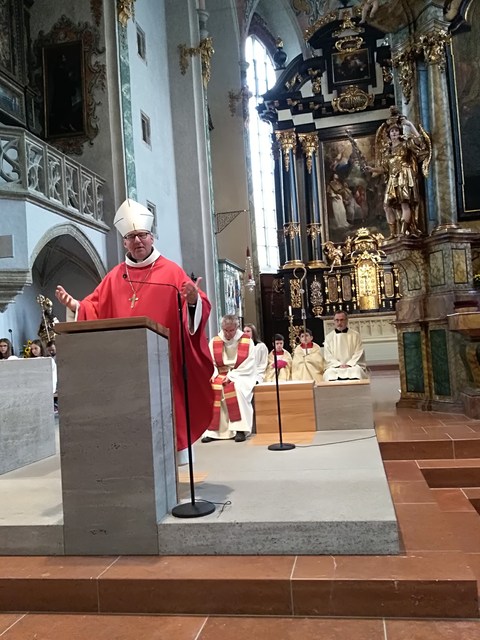 Der Festgottesdienst mit Bischof Hermann und Pfarrer Jakob Patsch wurde umrahmt von einem Bläserquartett und feierlichem Orgelspiel. Bischof Hermann ging in seiner Predigt ausführlich auf Leben und Zeugnis des Seligen Südtiroler Vinzenzbruders Josef Mayr-Nusser ein, dessen Reliquie in der Stadtpfarrkirche aufbewahrt wird, und ermutigte zur Gründung von Jugendgemeinschaften.