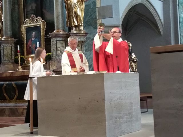 Die beiden Zelebranten nahmen sich anschließend auch noch Zeit für ein gemeinsames Mittagessen im Kurhaus mit den Teilnehmern der Wallfahrt. Es gab ausreichend Zeit für regen Gedankenaustausch und Gelegenheit für gemeinsame Fotos.