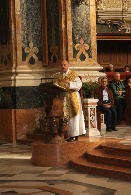 Die Eucharistiefeier gestalteten Clara Sattler (Gesang) und Franz Comploi an der Orgel mit. In der Predigt betonte Domdekan Fistill, dass Christentum – nach einem Satz von Papst Franziskus – „eine konkrete Religion, eine Religion des Handelns" sei. Es genüge nicht „schon katholisch zu sein", ab und zu ein bisschen zu helfen und eine Spende zu geben. „Konkretes christliches Tun heißt sich den Menschen zuwenden, für sie Zeit und Energie aufwenden". Die Vinzengemeinschaften lebten diesen Grundsatz.