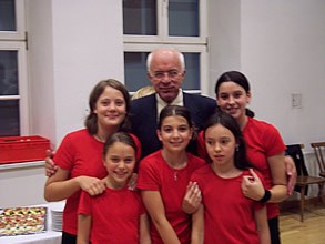 Bild: Jugendgruppe mit Landeshauptmann DDr.Herwig van Staa, selbst aktives Vinzenzmitglied und Gründungsmitglied der VG Leopoldina