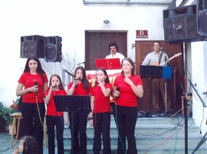 Auftritt bei der Generalversammlung der Vinzenzgemeinschaften im Kolpinghaus in Innsbruck (hinten: v. re: Kurt Prati und Karl Grüner)