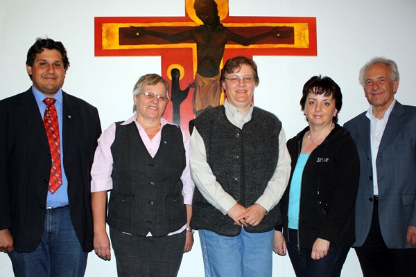(v.li.) Mag. Michael Brugger, Brunhilde Hofer (Obfrau), Erika Hofer, Regina Gleinser und Diakon Leo Pfurtscheller (Geistlicher Beirat)