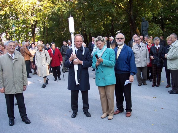 Schuloberinspektor Fritz Hager, der die Andacht mit Führung hervorragend durchführte / Generalvikar Mag.bJakob Bügler mit Ehrenpräsident Dr. Oskar Wötzer