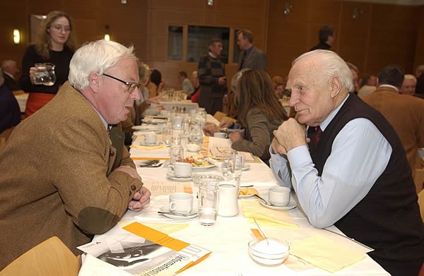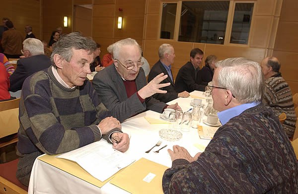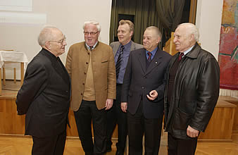 v.re. die Ehrenpräsidenten Dr. Oskar Wötzer und Peppi Plankensteiner sowie die Präsidenten von Nordtirol, Dr. Christoph Wötzer, und Südtirol, Ulrich Graf Toggenburg, im Gespräch mit Bischof Reinhold Stecher