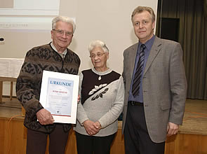 Die VG Breitenwang hat sich verjüngt. Der ehemalige Obmann Josef Hesche wird für seine Verdienste beim Aufbau dieser VG mit einer Urkunde bedankt.