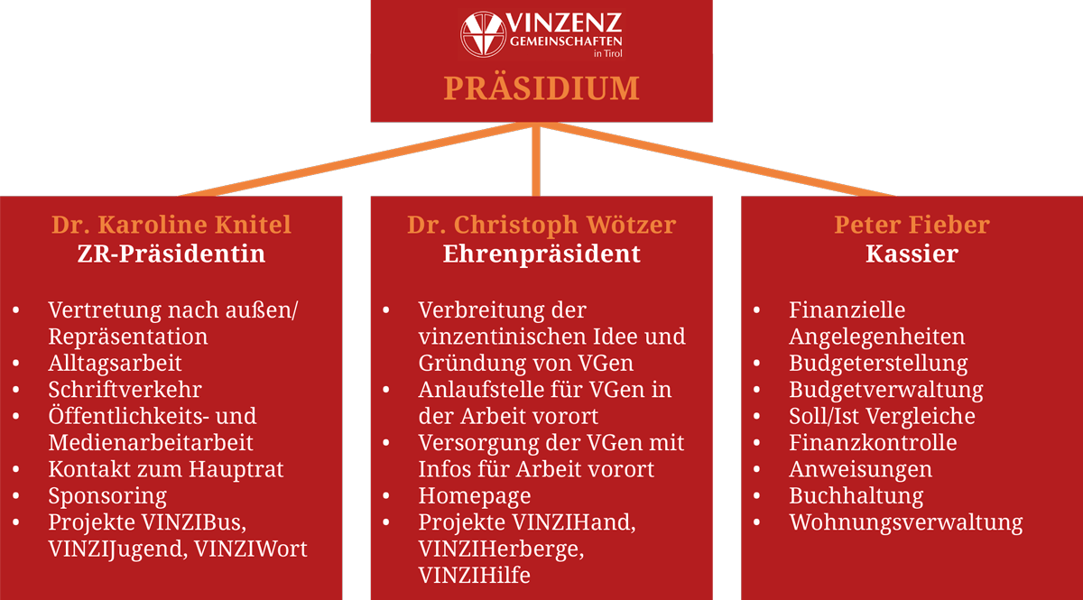 Getreu unserem Leitbild zeichnet der Zentralrat als Dachverband der VGen in Tirol für die gedeihliche Entwicklung der Vinzenzgemeinschaften verantwortlich.