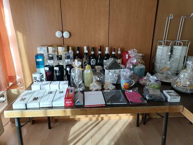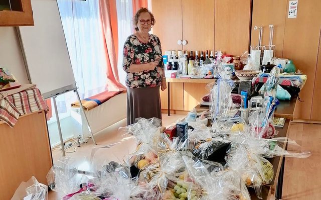 Obfrau Elisabeth Pöll mit den Tombolapreisen