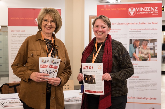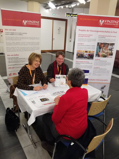 Rund 1200 Mitglieder der Pfarrgemeinderäte und 40 kirchliche Einrichtungen und Initiativen nahmen im Congress Innsbruck zum Kennenlernen und Erfahrungsaustausch teil. Auch die Vinzenzgemeinschaften Tirol präsentierten sich mit einem Infostand. Dabei wurden auch der neu erstellte Jahresbericht 2022 und der Falter über die neun Projekte der Vinzenzgemeinschaften aufgelegt.
