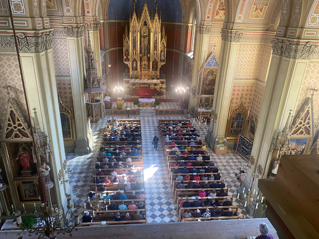 Petrus scheint ein Fan unserer Wallfahrt zu sein. Bei blauem Himmel und strahlendem Sonnenschein genossen die fröhlich gestimmten TeilnehmerInnen einen wunderbaren Ausflug. Eine wahrliche große Anzahl an WallfahrerInnen machten sich auf den Weg nach Zirl mit dem Ziel, in der Pfarrkirche zum heiligen Kreuz eine Messe zu feiern. Der gemeinsame Gottesdienst wurde vom Geistlichen Beirat der Vinzenzgemeinschaften in Tirol, Msgr Pfarrer Helmut Gatterer, würdig zelebriert. Die musikalische Umrahmung begeisterte auf höchstem Niveau durch den Organisten Dr. Joachim Mayer sowie dem Bläserquintett des Musikvereines Zirl.
