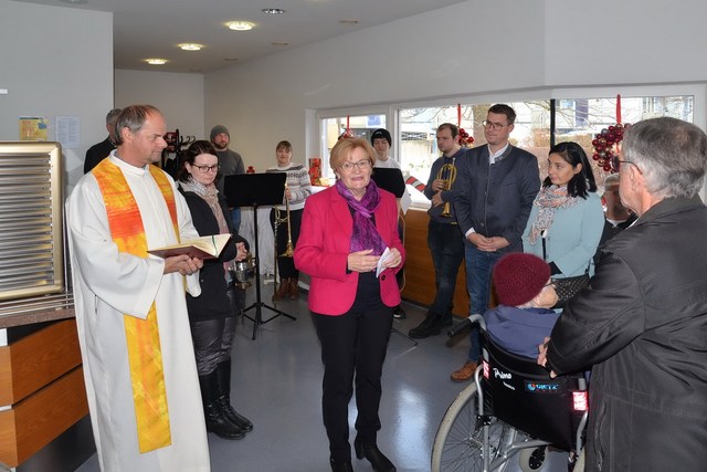 Bei der Eröffnung segnete Dekan Peter Scheiring die Räumlichkeiten. Musikalisch wurde die kleine Feier von einer Bläsergruppe der Marktmusikkapelle begleitet.