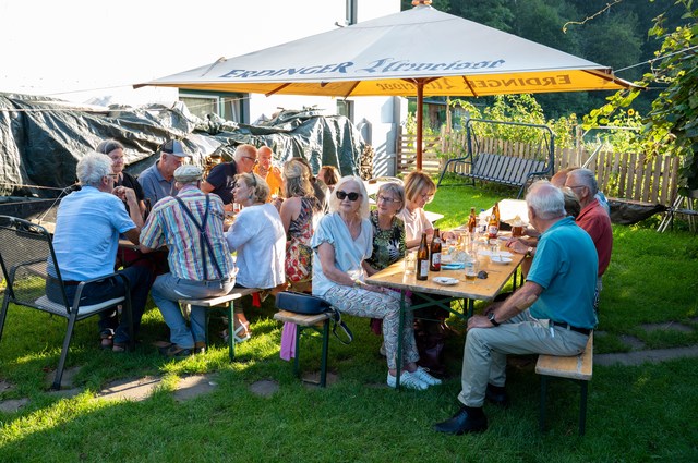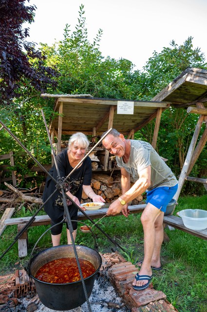 Die Besucher wurden kulinarisch verwöhnt, mit Gulasch, das über offenem Feuer zubereitet wurde, mit feuriger Musik, zu der eifrig getanzt wurde und als Nachspeise gab es auch noch feine Kuchen. An diesem strahlenden Sommertag wurde nicht nur gelacht, geplaudert, getanzt, gegessen und getrunken, sondern auch gestaunt. So zeigte Jussuf Windisch, der Obmann der VINZIHerberge, allen Besuchenden den Kinderspielplatz, die geschichtsträchtigen Räumlichkeiten, das Kommunikations-Tippi, den liebevoll gestalteten Gemeinschaftsgarten und sogar ein Blick in das Nebenhäuschen, das sich bestens für eine Auszeit eignet, war gestattet. Nach diesem Tag waren sich alle einig: Dieser Ort ist getragen von Gemeinschaft, Zusammenhalt und Zuwendung und Anerkennung für das Wirken aller.