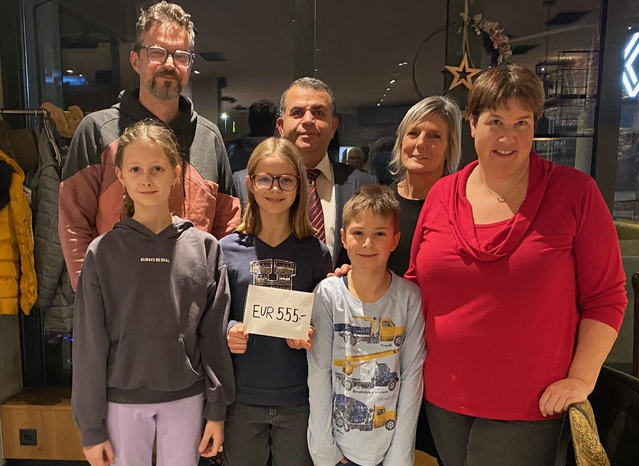 Im Bild v. l.: Tanja, Eva und Benjamin mit Vater Reinhard und den Mitgliedern der VG Kufstein, Mahmut Ince (Mitte), Roswitha Vallant und Carmen Oberenzer