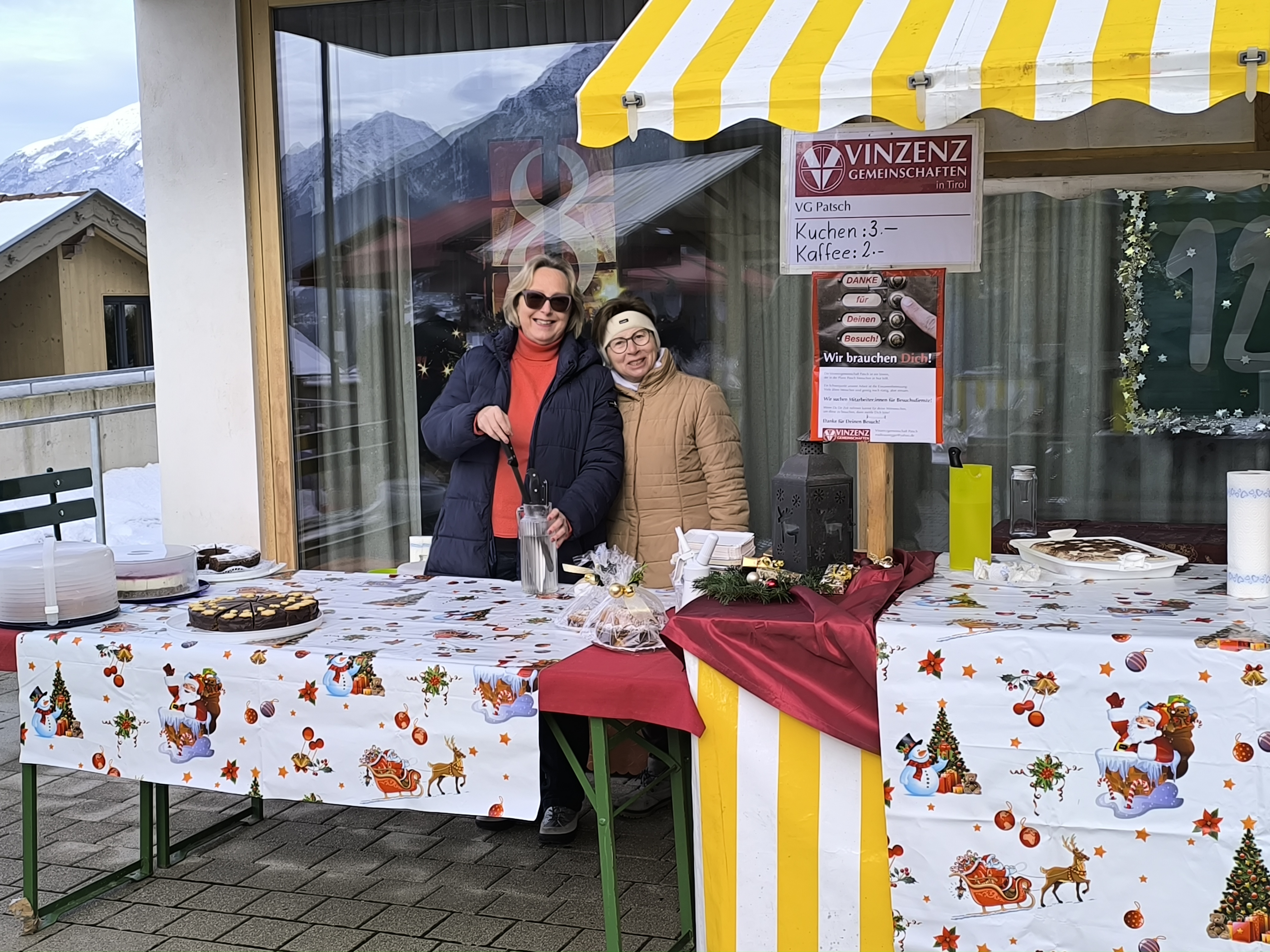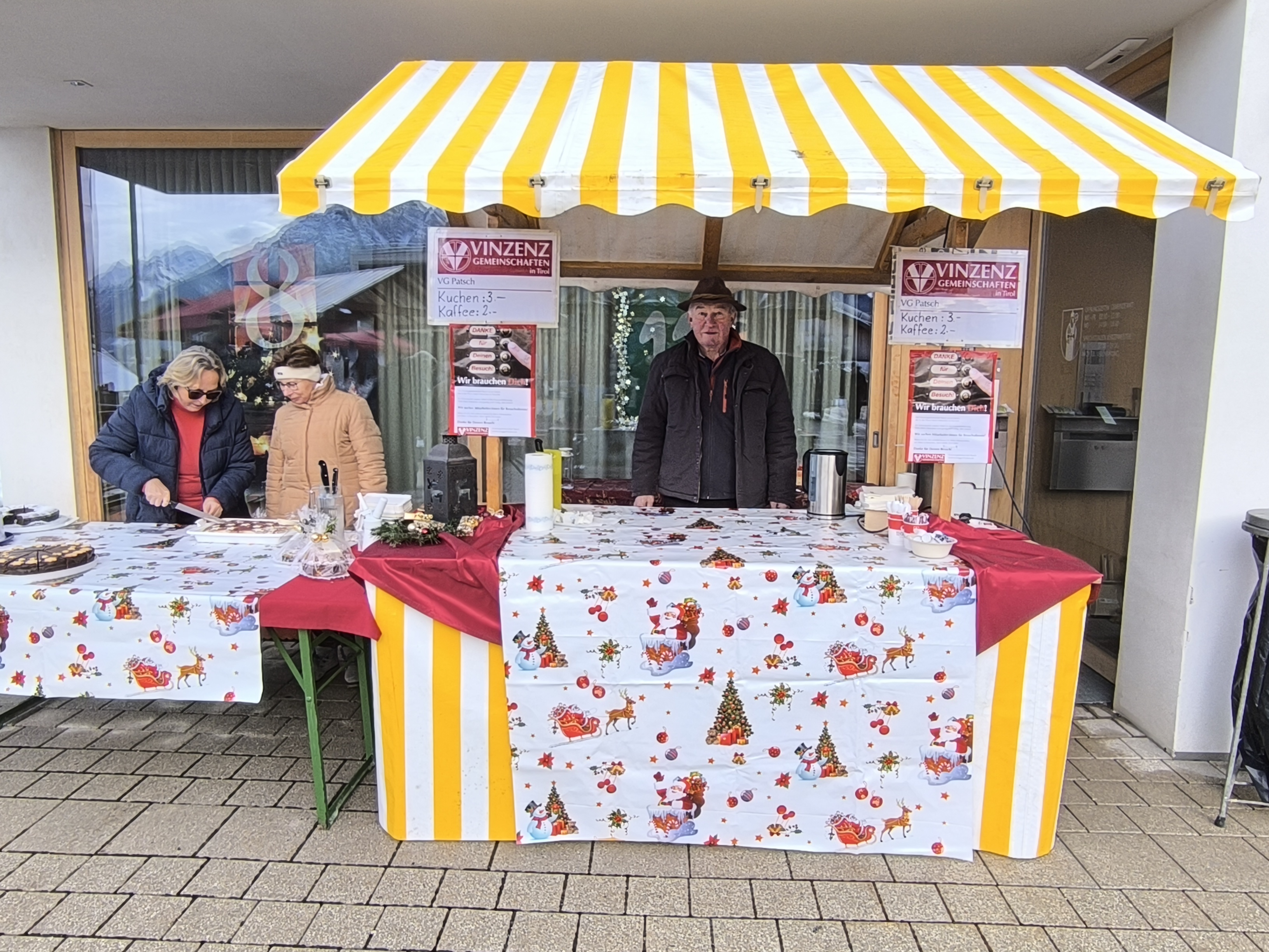 Auch in diesem Jahr beteiligte sich die Vinzenzgemeinschaft Patsch am alljährlichen Adventmarkt. Mit einer süßen Auswahl an feinen Kuchen war der Stand der Patscher ein beliebter Treffpunkt. Mit dem Erlös können die Vinzentiner wieder Gutes tun.